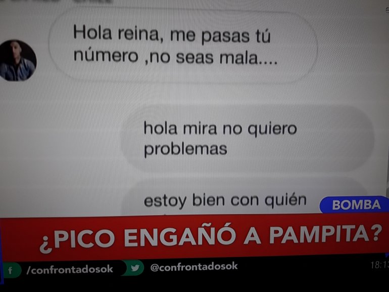 Algunas versiones cercanas a Pico Mónaco aseguran que los chats de la chica son antiguos, de cuando él estaba soltero. Y que es el Pollo Alvarez (compañero de Pico en el programa de cable) quien estuvo ahora con ella.