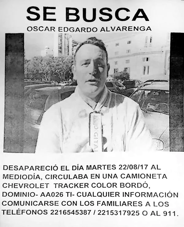 Alvarenga se movilizaba en una Chevrolet Tracker color bordó, dominio AA 026 TI. La última vez que se lo vio fue en la calle 47, entre 7 y 8 de la ciudad de La Plata. "No sabemos qué pensar; nunca hizo algo así, nunca se fue sin avisar", aseguró a este medio.