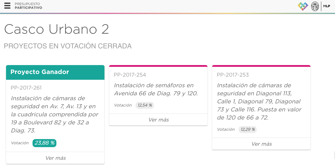 Sobre el proceso de votación, este caso se destacó porque al haber muchos proyectos, los números iniciales fueron muy parejos. Sin embargo, en los últimos momentos, la propuesta ganadora sacó un amplio margen de diferencia, con clara ventaja sobre la instalación de semáforos en Avenida 66 de Diag. 79 y 120, que obtuvo el %12,54.