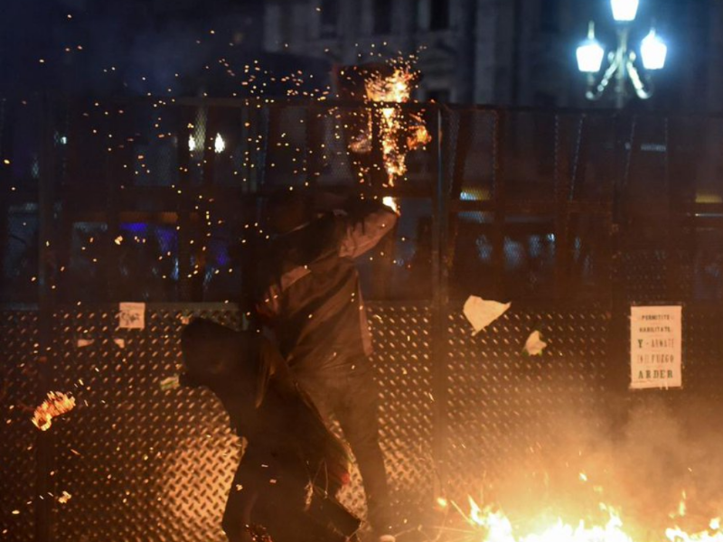Luego de que el Senado rechazara el proyecto de aborto legal, seguro y gratuito que había tenido media sanción en Diputados, entre 40 y 50 manifestantes lanzaron piedras, botellazos y quemaron maderas frente a las vallas ubicadas alrededor del Congreso, donde estaba la multitud con pañuelos verdes en favor de la iniciativa. Un carro hidrante de la Policía lanzó agua a quienes protestaban, y luego detuvo a ocho personas: siete por los incidentes, y uno por agredir a un fotógrafo.