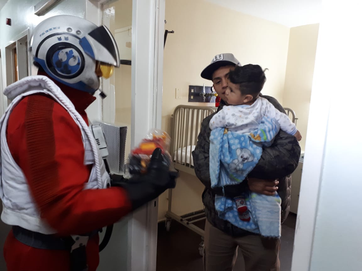 "Siempre hacemos estas entregas con alguna caracterización. Esta vez son ocho personajes de Stars Wars", contó Mariano, quien se encuentra recorriendo todo el establecimiento para donar los juguetes.