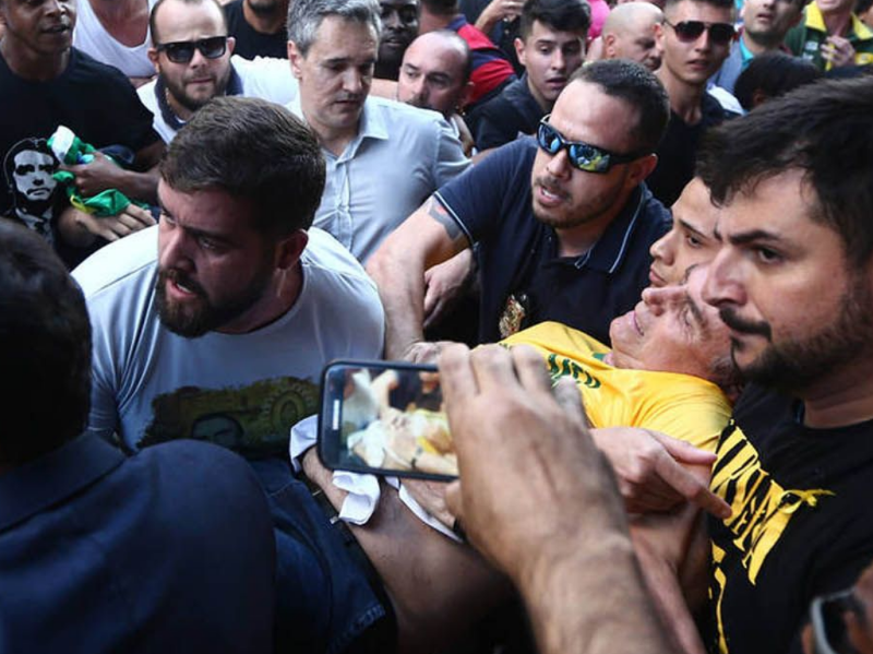 Bolsonaro, líder en las encuestas para la primera vuelta del 7 de octubre, fue ingresado el jueves por la tarde con un cuadro vital comprometido: hemorragia interna, tres perforaciones en el intestino delgado, una lesión grave en el intestino grueso y otra en una vena del abdomen.