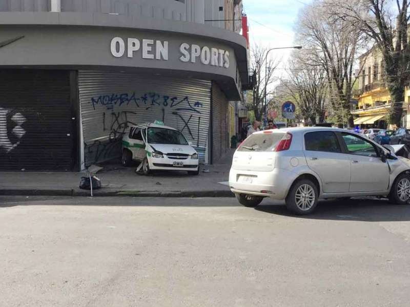 En el centro platense la mañana comenzó con un violento choque: un taxi colisionó con un auto y terminó terminó incrustado en un Open Sport ubicado en la esquina de 5 y 49.