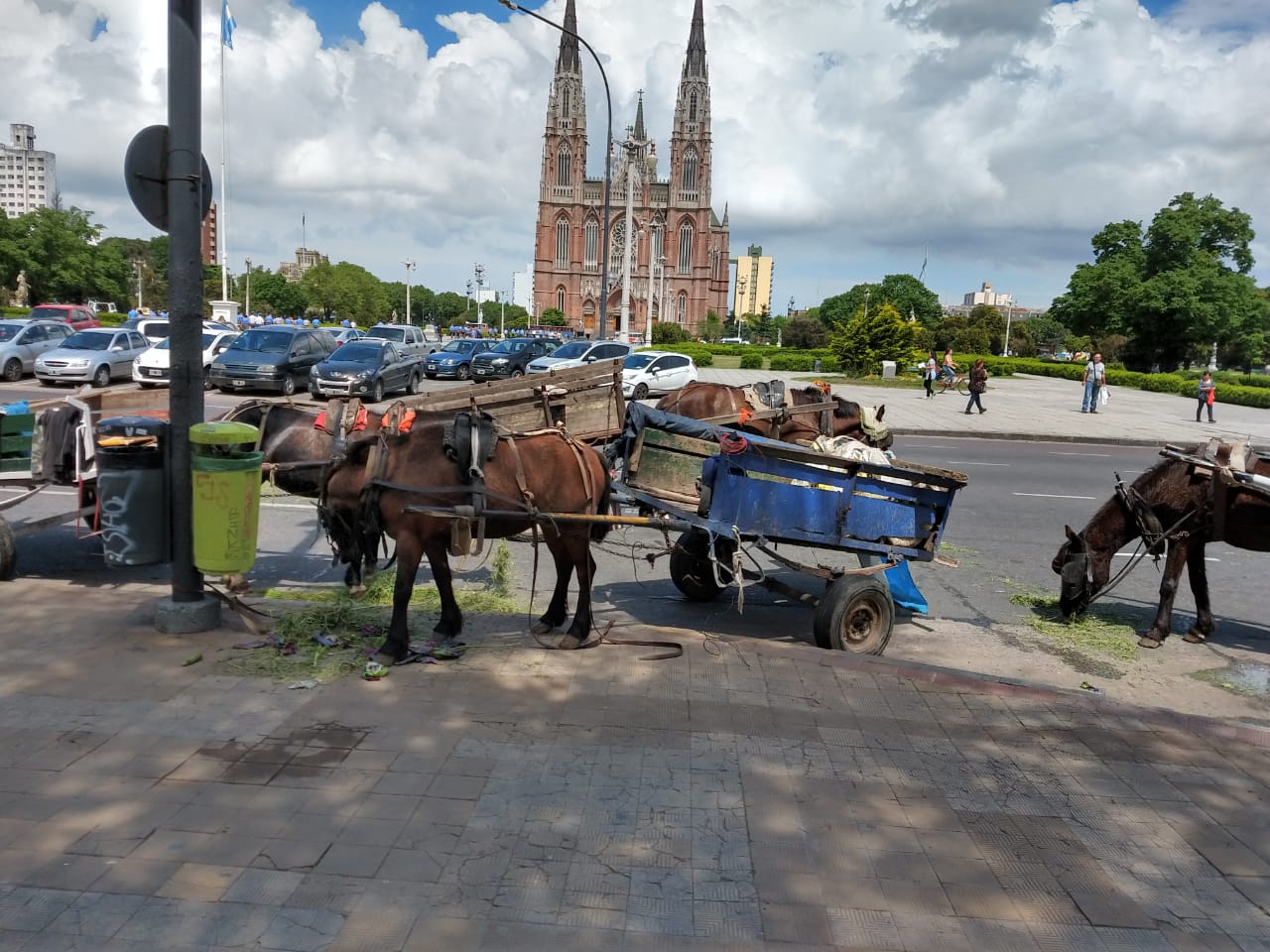 Durante esta jornada se lleva a cabo una protesta de los carreros y cartoneros de La Plata frente al municipio.