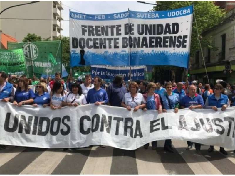 El jueves a la mañana el FUDB junto a estatales, judiciales y médicos unificaron sus reclamos contra la Gobernadora. En la marcha apuntaron contra María Eugenia Vidal y, durante la manifestación, el secretario general de Suteba, Roberto Baradel dijo: "Gobernadora, en lugar de ir al Coloquio de IDEA, por qué no prueba con resolver las 523 escuelas que están cerradas en la Provincia de Buenos Aires".