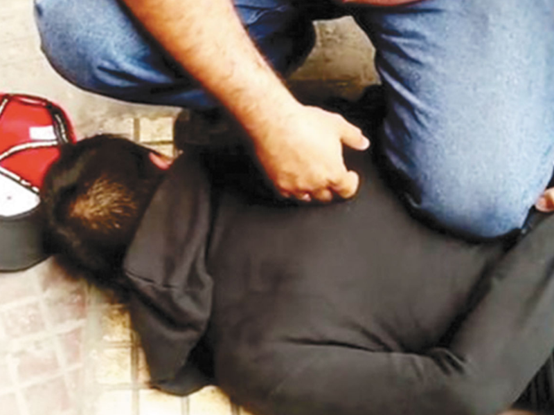 Al asomarse por la ventana vio a un muchacho que con toda furia quería derribar el acceso, por lo que salió a pedir ayuda. Para su fortuna, un grupo de vecinos acudió al lugar y logró atrapar al delincuente antes de que este se pudiera dar a la fuga, reteniéndolo hasta que llegara un móvil de la Policía.