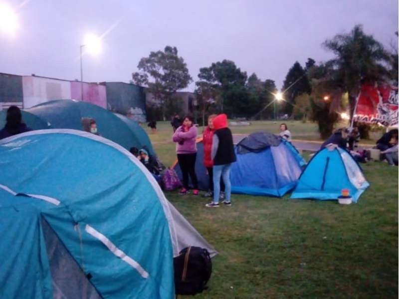 Durante esta mañana se desarrolla el segundo día de acampe en Camino Belgrano y 514, frente a un hipermercado.
