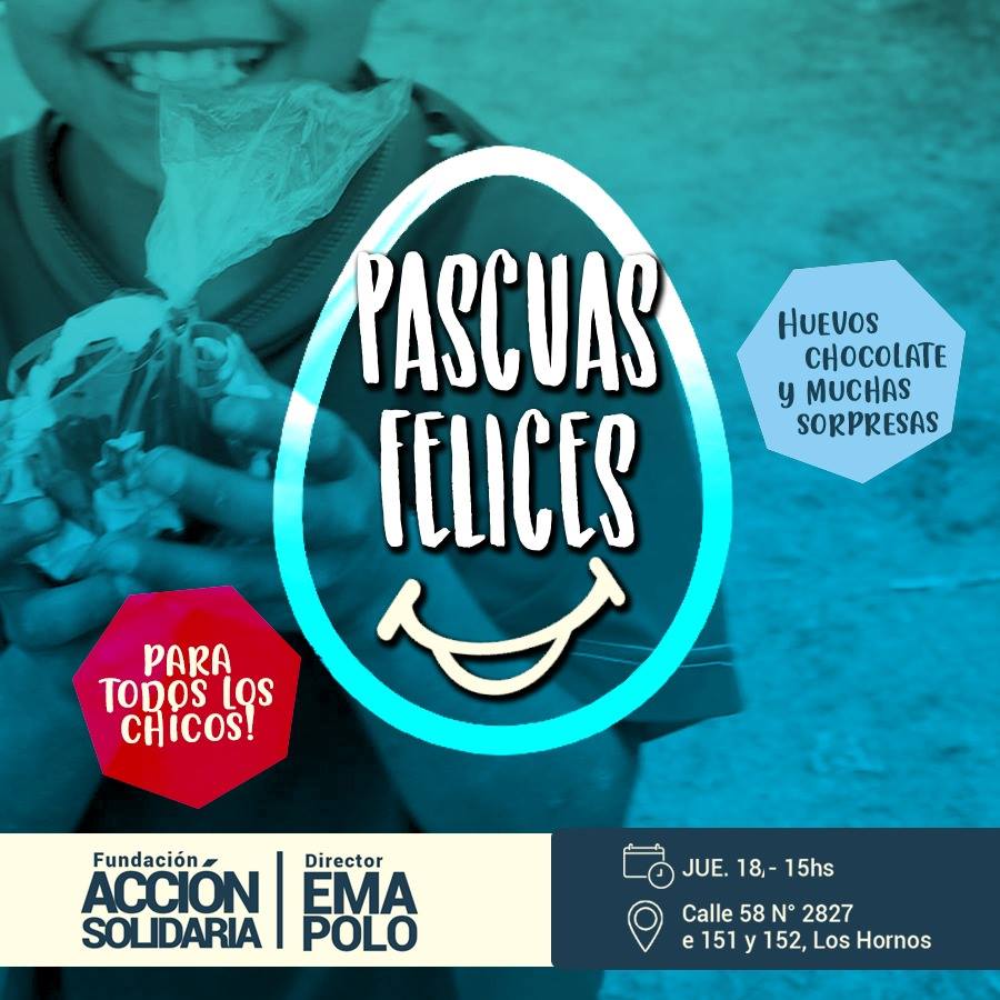 "El costo de los alimentos nos motivó hacer este esfuerzo, sabemos que muchas familias de Los Hornos no llegan a comprar un huevo o tener un momento para festejar las pascuas con sus hijos; por eso con el apoyo de comerciantes y voluntarios lanzamos Pascuas Felices. Otra vez nos encontramos para compartir, ayudar y acompañarnos entre vecinos" aseguró Emmanuel Polo, Director de Acción Solidaria.