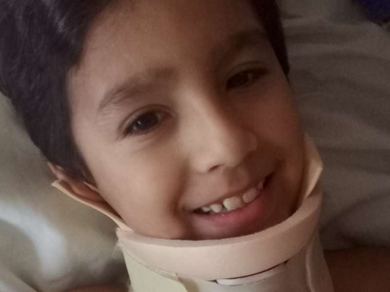 Leandro tiene nueve años y ayer le hicieron la segunda operación de columna porque tiene cáncer.