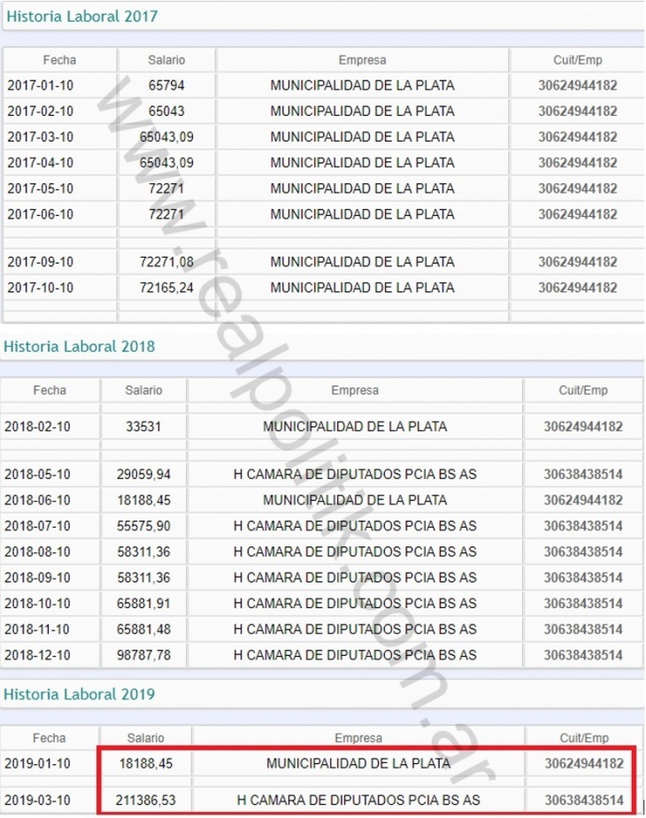 Según informó el sitio Real Politik, Arteaga pasó de ganar unos 70 mil pesos como concejal a unos míseros 18 mil pesos como empleado de planta permanente de la municipalidad de La Plata. Paralelamente, a comienzos de 2018, como si un solo sueldo del estado no bastara, operó su ingresó a la Cámara de Diputados de la provincia de Buenos Aires. Desde entonces a la fecha, su sueldo pasó de 29 mil pesos a 211 mil mensuales.
