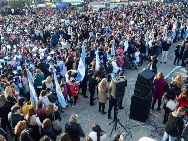 El acto estaba previsto para las 8.30 horas en Plaza Belgrano. Había cientos de personas y chicos de diferentes escuelas. Inclusive, procedieron a cortar la calle para que se realice el acto.