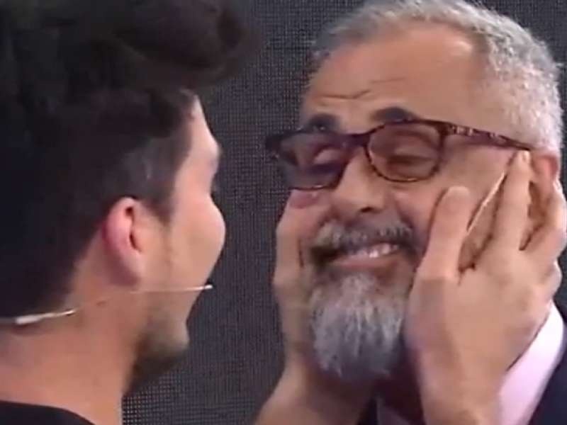 Mientras contaba la noticia, Záffora decidió recrear la escena, se acercó a la silla de Jorge Rial y le dio un "pico" sorpresivo.