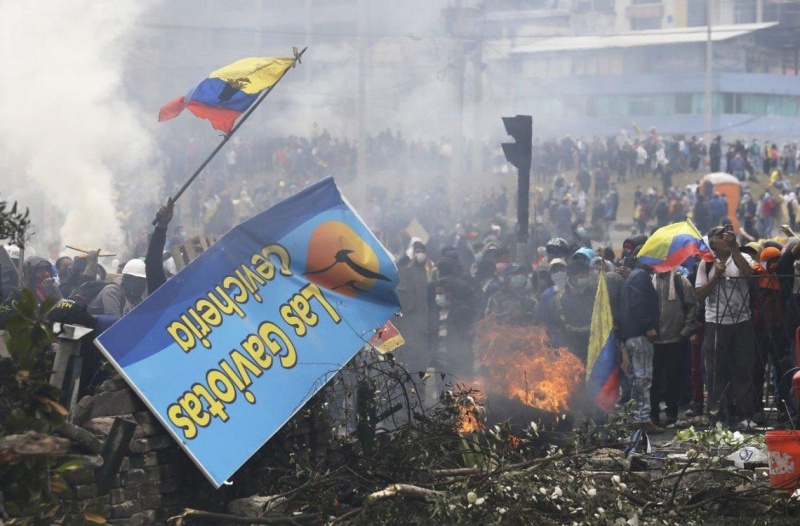 "He dispuesto el toque de queda y la militarización del Distrito Metropolitano Quito y valles. Empezará a regir a las 15 (17 de Argentina). Esto facilitará la actuación de la fuerza pública frente a los intolerables desmanes de violencia', dijo el presidente de Ecuador en un mensaje por redes sociales.