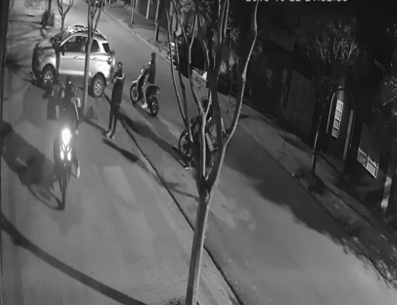 Una cámara de seguridad vecinal filmó la secuencia. Al menos dos ladrones tenían armas y le apuntaron a la víctima en un par de ocasiones.