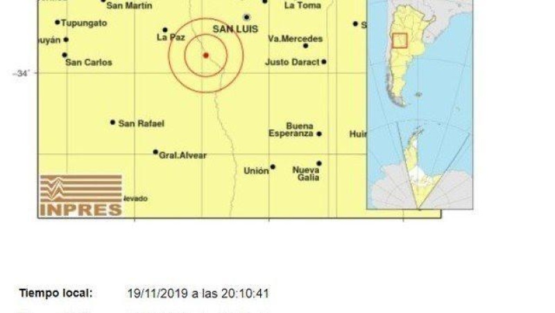 El temblor fue a 10 kilómetros de profundidad y se registró a 78 kilómetros al sudoeste de San Luis y a 204 de la capital mendocina.