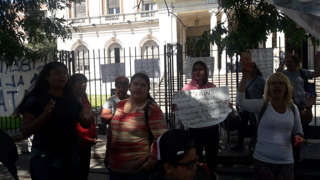 Durante este viernes se realiza una manifestación frente a los Tribunales Federales de 8 entre 50 y 51. Piden la liberación de Juan Pablo 'Pata' Medina y de David García, quienes están detenidos actualmente en Marcos Paz con prisión preventiva.