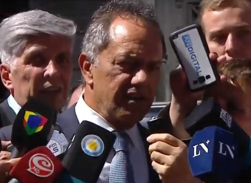 Daniel Scioli arribó a la asunción de Alberto Fernández y se mostró contento de que el vicepresidente de Brasil haya asistido al acto.
