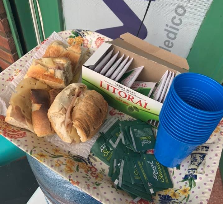 De hecho, esta última navidad recibieron donaciones para que ningún chico se quede sin su pan dulce. La comida fue puesta en una mesa frente a la farmacia para quien lo necesite.