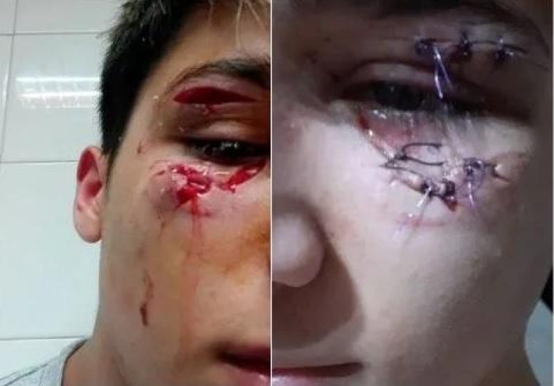 La chica explicó que su hermano no pudo defenderse y si bien pidió "disculpas por haberlo chocado en el tumulto de gente", los golpes que le propinó el otro chico, identificado como Gonzalo Miño, jugador del Club Varela Junior, le rompieron los lentes a Mauro, lo que le ocasionó "un corte en el ojo izquierdo" y "lesiones en la córnea", además de quebrarle un diente.