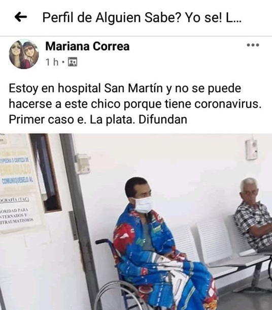 Una vecina difundió en sus redes sociales el supuesto caso de un hombre con coronavirus en La Plata. Inclusive le sacó una foto en el Hospital San Martín.