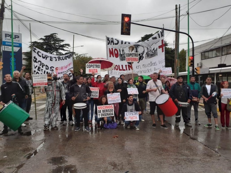 A pesar de la lluvia y de un fallo judicial reciente en contra, los vecinos agrupados en la asamblea que lucha contra la contaminación de COPETRO se manifestaron esta mañana en el acceso a la empresa.
