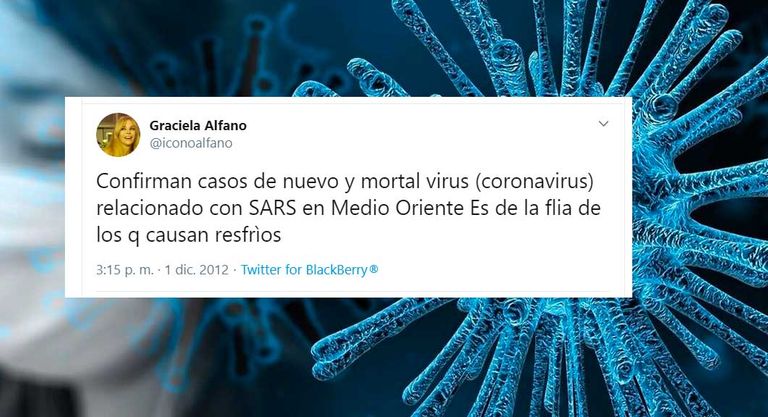 En diciembre de 2012, Graciela se hizo eco del Mers, el síndrome respiratorio por coronavirus que se había desarrollado en Oriente Medio y que se la relacionaba con otro virus respiratorio, el Sars. "Confirman casos de nuevo y mortal virus (coronavirus) relacionado con SARS en Medio Oriente Es de la flia de los que causan resfríos", escribió la rubia.