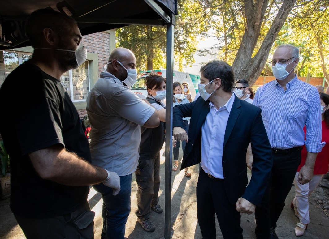 El gobernador de la Provincia de Buenos Aires, Axel Kicillof, recorrió el centro logístico acondicionado en el centro de rehabilitación del hospital provincial El Dique de Ensenada, donde esta semana se recibieron insumos y equipamiento hospitalario adquiridos en el marco de la emergencia sanitaria por COVID-19. Kicillof estuvo acompañado por el jefe de Gabinete bonaerense, Carlos Bianco, y el ministro de Salud, Daniel Gollán.