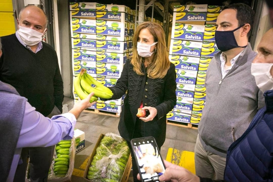 La titular del Consejo Nacional de Coordinación de Políticas Sociales, Victoria Tolosa Paz, recibió ayer en la empresa Tropical S.A. del Mercado Central la primera entrega de un total más de 50.000 kilos de frutas donadas por la Cámara Argentina de Fruticultores –manzanas y peras provenientes del valle de Río Negro-, que serán destinadas a comedores comunitarios en el marco del programa Argentina contra el Hambre.