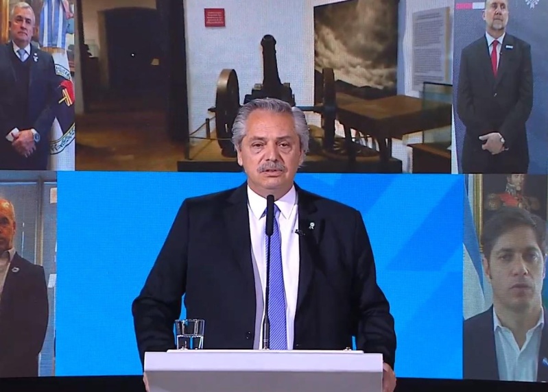 "Estamos trabajando unidos para enfrentar lo que nos toca vivir. Estuvimos todos asediados por un virus y todos estuvimos de acuerdo en que había que preservar la salud. Todos nos recomendaron quedarnos en nuestras casas y alejarnos de la peste. Eso le pedimos al pueblo, que se resguarde", aseguró Fernández sobre la pandemia.