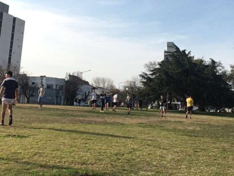 La vecina platense, Agustina Politi, compartió en su cuenta de Twitter la indignación que siente ante un grupo de personas jugando un "picadito" de fútbol. Según la ciudadana, se trata de 25 personas jugando y otras 10 a manera de espectadores.