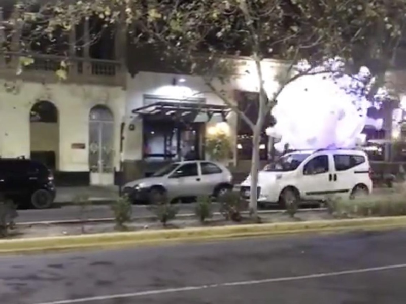 En la noche de ayer un auto con un COVID-19 gigante y luminoso, sorprendió a los transeuntes del centro de la ciudad de La Plata.