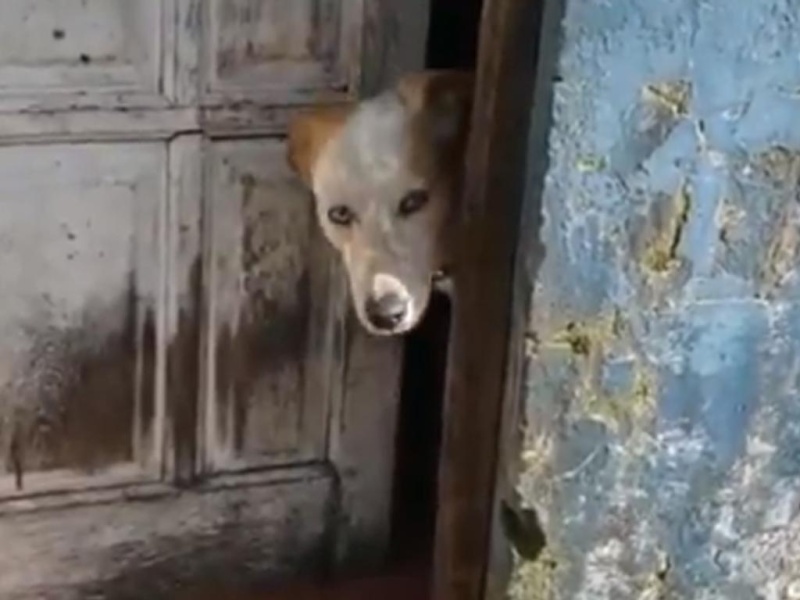 El "pichicho" escuchó el llamado de los trabajadores y se asomó a la puerta para ver quién se había acercado hasta su domicilio. De todas maneras, y seguro por cuestiones de seguridad, el perrito sólo dejó mostrar su cabeza por la puerta de su casa entreabierta.