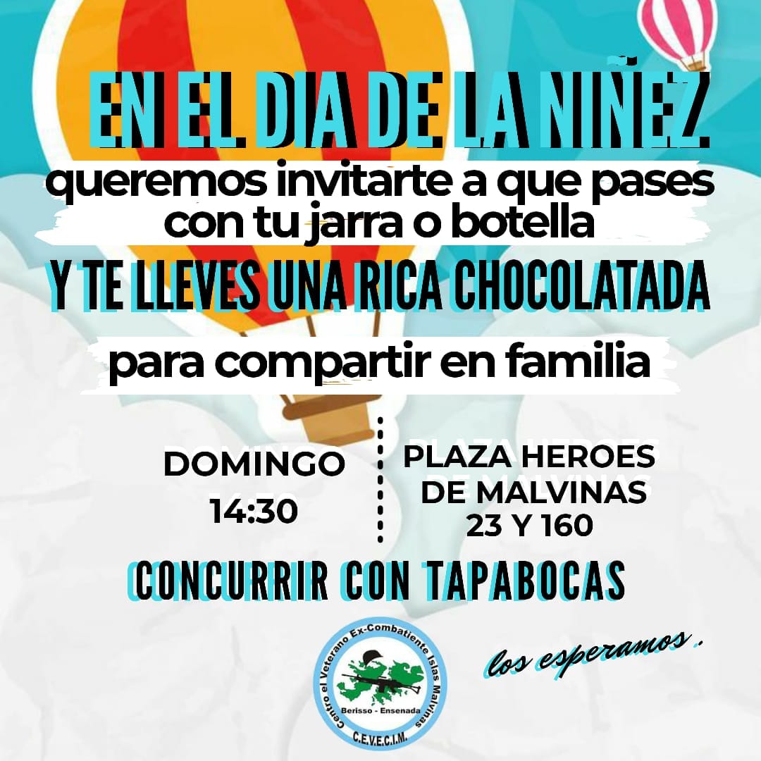 Los ex-combatientes pertenecientes al Centro el Veterano Ex-Combatiente Islas Malvinas estarán repartiendo chocolatadas para los niños y niñas de Berisso y sus familias.