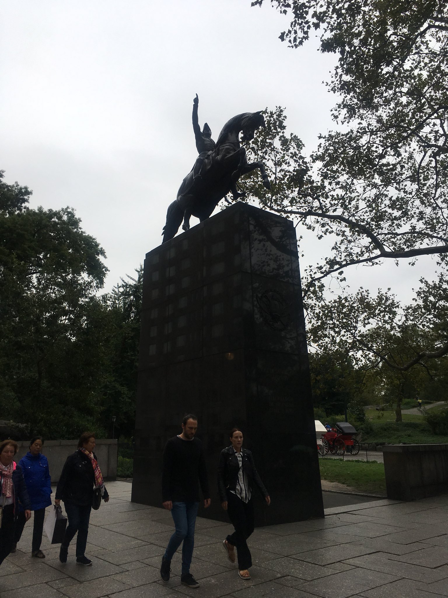 En dicha ciudad estadounidense, San Martín posee una estatua en el Central Park, en su retratato se lo puede ver encima de su caballo señalando, señalando hacia el norte.