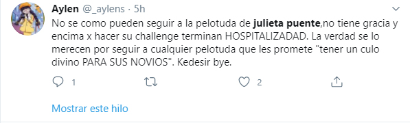 En este caso, quién fue víctima de las redes fue la influencer Julieta Puente, quién propone a sus seguidores seguirla en sus entrenamientos y luego, etiquetarla para dar "el presente". De igual manera, en este caso es noticia no por la infinidad de historias de instagram con sus seguidores post entrenamientos, sino, por un acalorado video donde se la puede ver enloquecida incitando a aprovechar el cansancio para sacar más fuerzas y seguir.