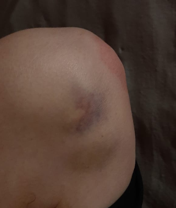"Me ahorcó y me pegó una piña en la cara, lo que me ocasionó hematomas, y al pegarme la piña me dio la cabeza contra la pared y me desmayé".