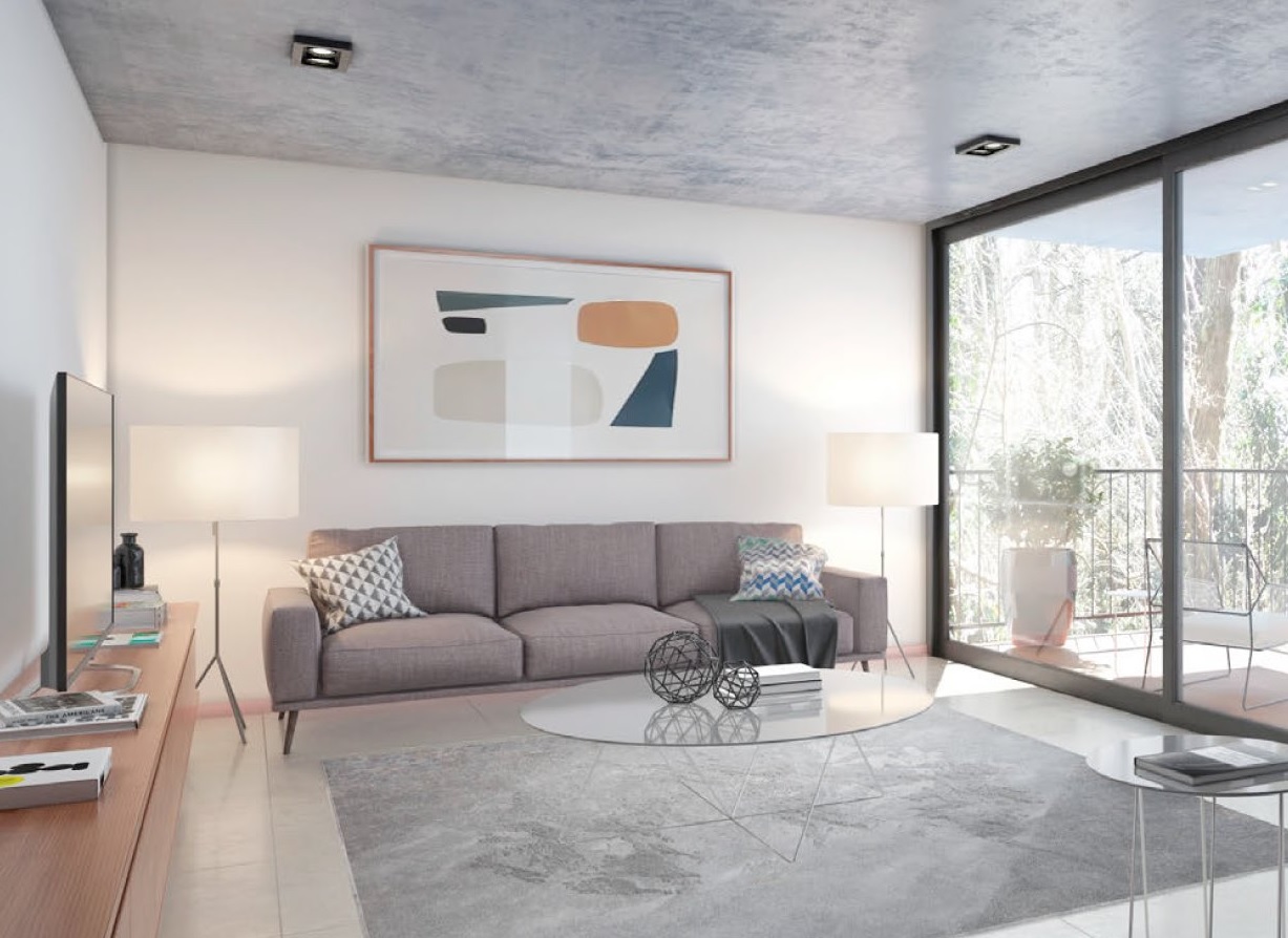 "La construcción, alejada del frente municipal, coexistiendo armónicamente en el entorno verde crea un conjunto único de viviendas en medio de la naturaleza en una zona única en City Bell", sigue el relato de la inmobiliaria Dacal.