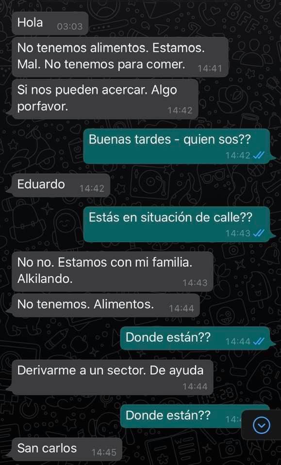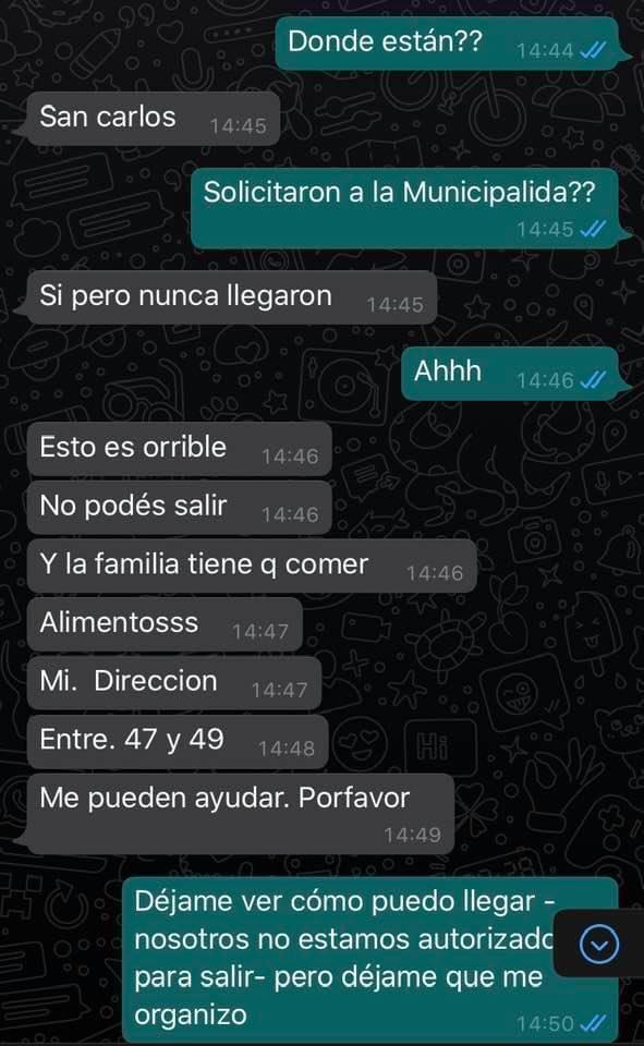 Además relató la secuencia: "Con Iván nos miramos. No paramos de bajar alimentos: carne, pollo, verduras y fruta. Está familia estaba pasando hambre, solicitó ayuda al Municipio y nunca llegaron".