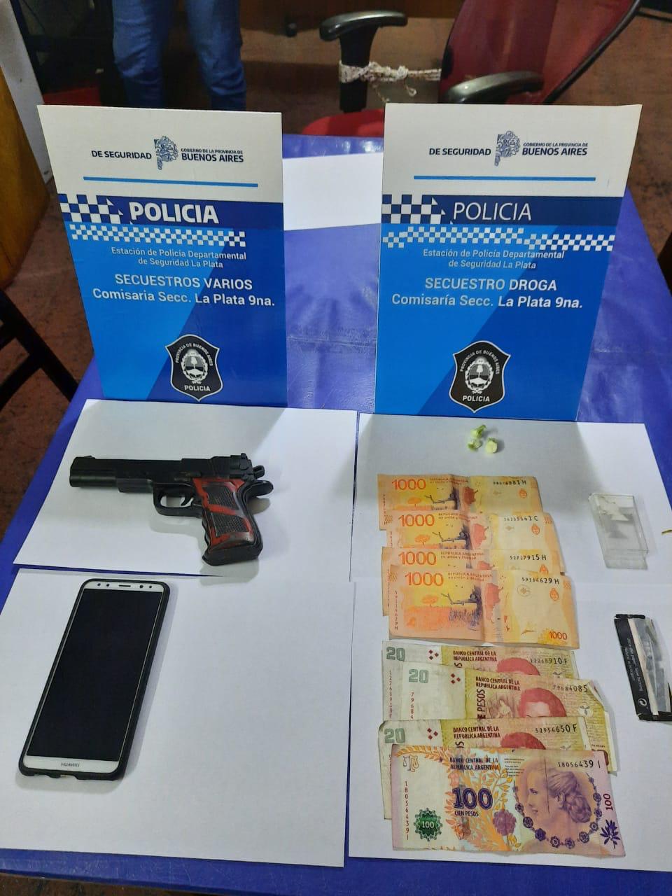 Allí se lo revisó y se encontraron una réplica de una pistola semiautomática de 9mm, tres dósis de cocaína y un teléfono celular.