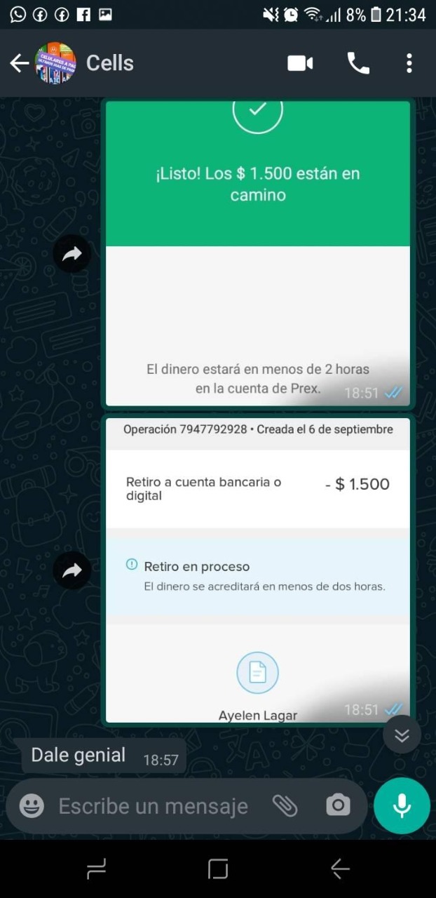 "Comparto esto para que no les pase como me pasó a mi... Yo lo hice sabiendo que sí que me iban a cagar y espero que nos les pase más a nadie. Yo tengo todos los datos de esta garca que en Facebook se llama Ayala Daiana Jesica y en persona se llama Ayelén Mariel Lagar, DNI 39919846", escribió la joven estafada.