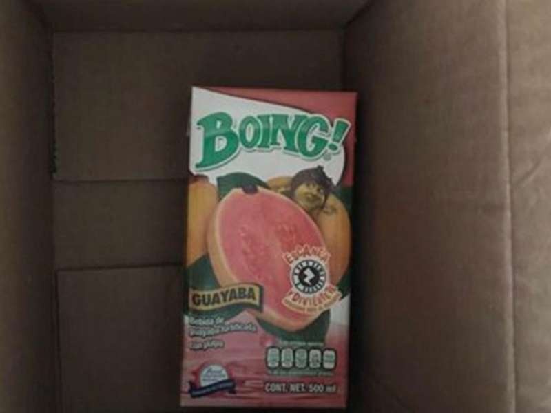 Según mostró el hombre en sus redes, en el envío sólo había un jugo Boing de sabor guayaba.