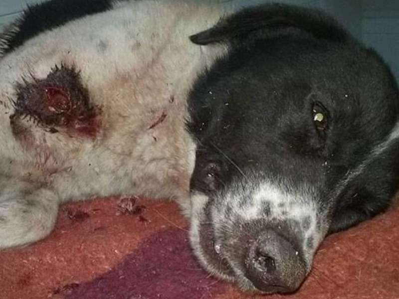 Su dueño y vecino lo apuñaló y abandonó, y ella quedó a su cargo, pero necesita dinero para costear la veterinaria y salvarlo, ya que perdió mucha sangre.