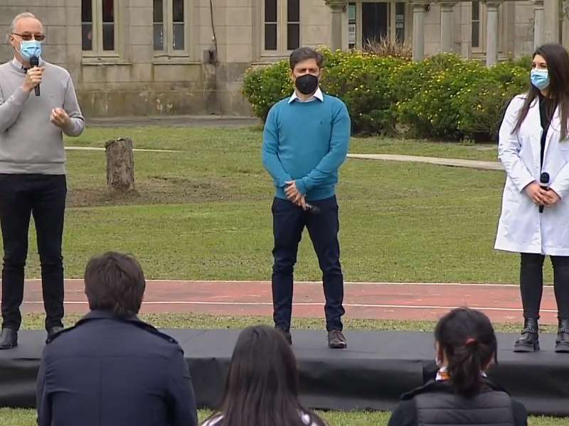 El gobernador de la provincia de Buenos Aires, Axel Kicillof, encabeza esta tarde un acto en el que se anuncia el pase a planta de 1.137 profesionales de la salud que finalizan sus residencias, se informó oficialmente.