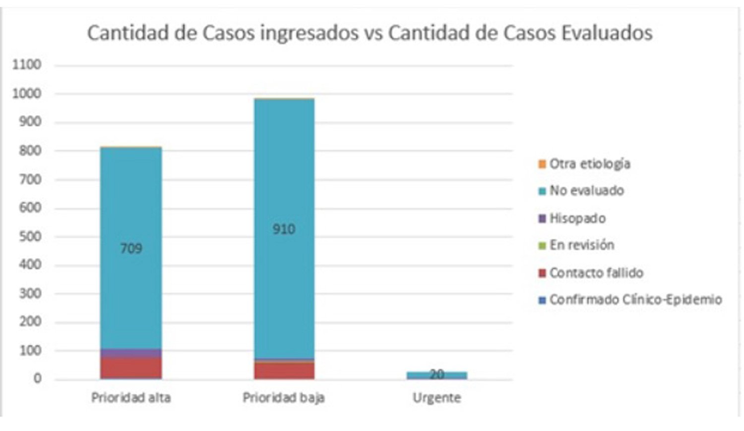 Según fuentes calificadas que facilitaron los informes, la cantidad de llamadas recibidas está organizada en 709 casos de prioridad alta por la sintomatología, y 910 de prioridad baja, lo que suma un promedio de 1.600 personas.