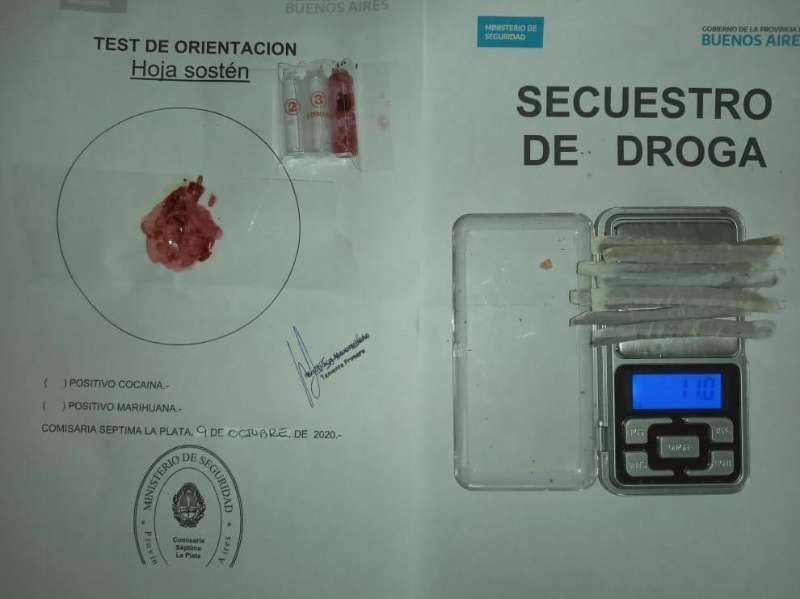 'Al llegar a la dependencia procedimos a realizar el test de pesaje y orientación sobre la sustancia incautada, siendo el mismo un resultado positivo de marihuana y un peso total de 11,00 gramos', contó uno de los jefes policiales.