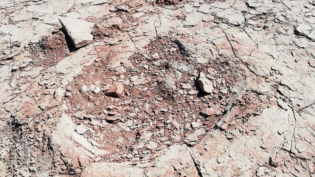 Canale agregó que "el lago de El Chocón está rodeado por la formación Candeleros de color rojo; son rocas sedimentarias de origen fluvial, es decir que fueron dejadas por ríos en su momento con mucho sedimento con carga de agua y los animales pasaban por ahí caminando o tomaban agua y dejaban las huellas marcadas".
