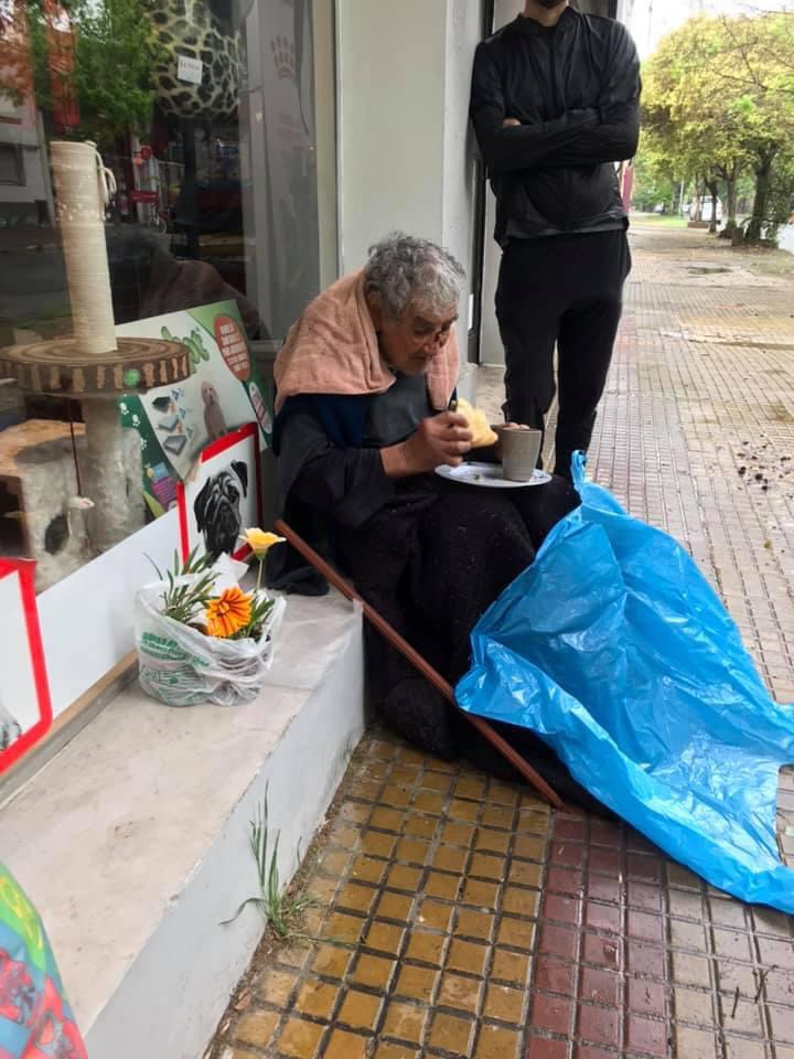 "Le compramos comida, le hicimos varios cafés y como estaba lloviendo demasiado empecé a difundir lo que pasaba en las redes sociales y de esa forma la gente se acercó, le acercaron comida", relató la vecina. Luego precisó que "llegaron dos personas diciendo que se lo iban a llevar a la casa, así que así fue, lo subimos a Carlos al auto y se lo llevaron ellos".