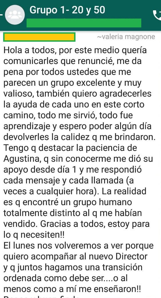 Magnone en tanto, le comunicó a sus compañeros a través de un grupo de Whatsapp que comparten, donde les agradeció el recibimiento y compañerismo pero aprovechó para contar: "Encontré un grupo humano distinto al que me habían vendido".