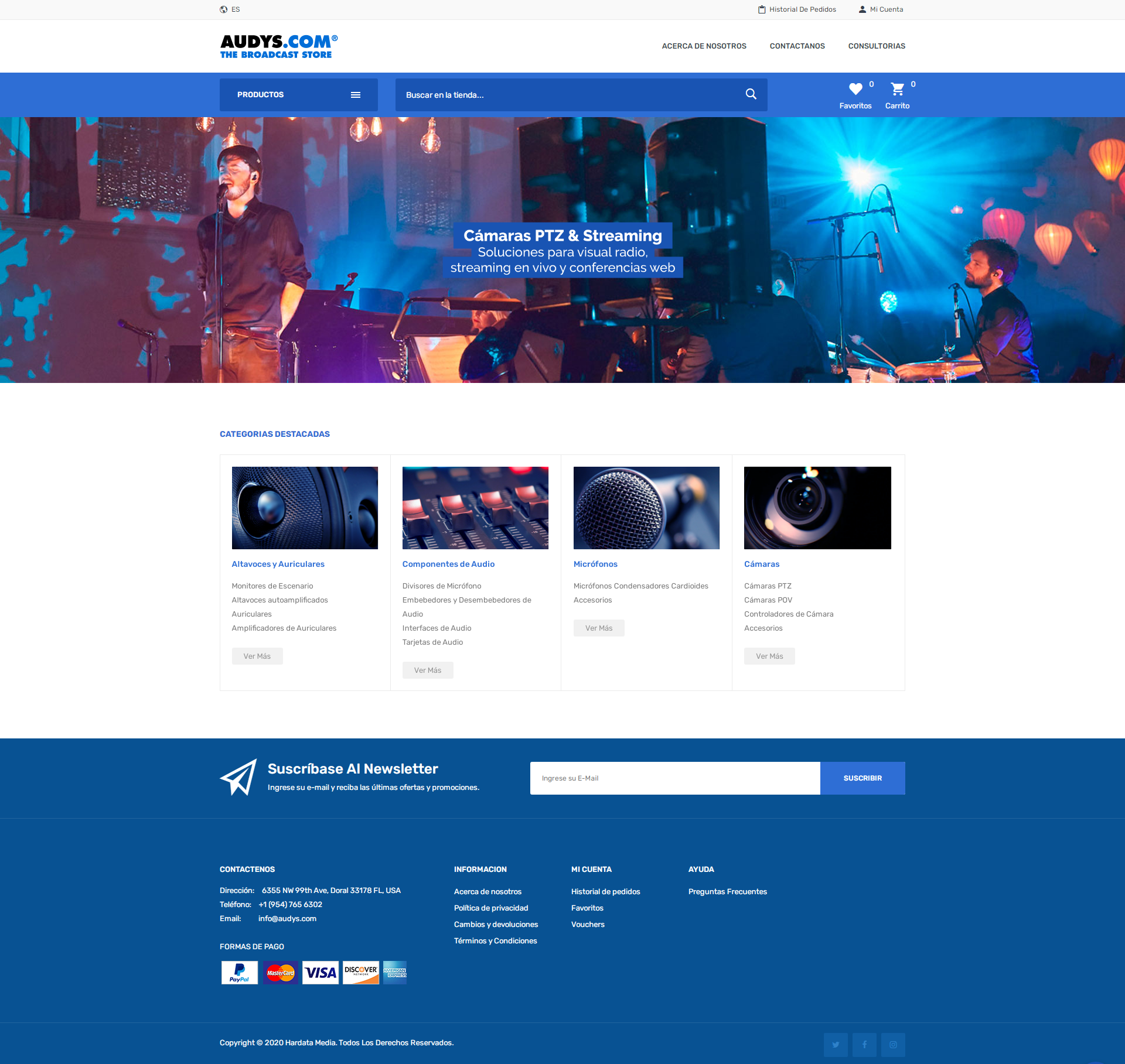 Audys.com es una tienda virtual de equipamiento y consultoría creada por el CEO de Hardata, Gustavo Pesci, para proyectos relacionados a la transmisión de contenido digital. Esta hecha por un grupo de personas con más de 20 años de experiencia en la industria mundial de tecnología de medios. La propuesta de Audys.com se basa en el asesoramiento para la creación y ejecución de proyectos pequeños, medianos y grandes productores de contenido.