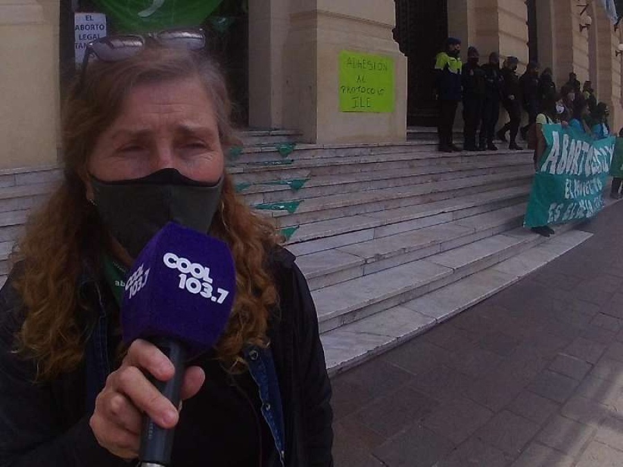 Los y las concejalas fueron recibidos por un grupo de activistas mujeres, pidiendo que la ciudad se adhiera a la ley de ILE (Interrupción Legal del Embarazo) sancionada en la Argentina hace casi 100 años, en 1921.
